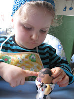 Marta bawi się figurkami-zwierzatkami w piaskownicy: